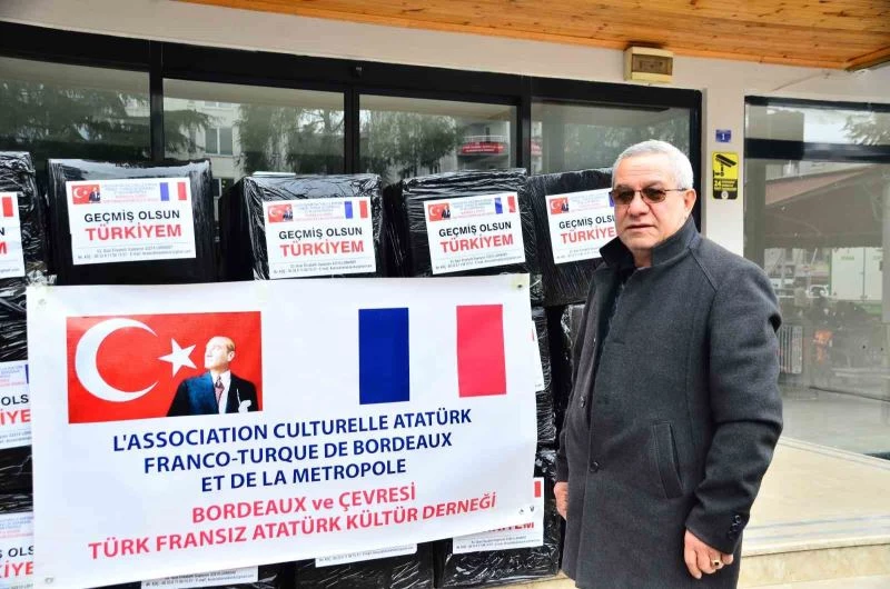 Bordeaux ve Çevresi Türk Fransız Atatürk Kültür Derneği adına toplanan yaklaşık 3 bin avroluk nakdi yardımla alınan bölgede ihtiyaç duyulan uyku tulumları, çadırlar, termal içlikler, termal çizmeler, mont ve yağmurluklar paketlenerek deprem bölgesine gönderildi.