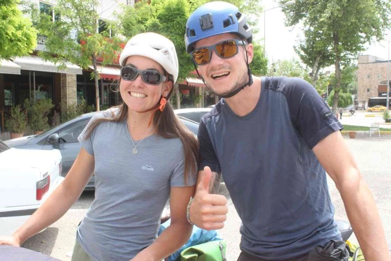 Fransa’dan bisikletle yola çıkan Laurine Hilaire ile Mael Millian isimli çift, Fransa’dan başladıkları yolda İtalya, Slovenya, Hırvatistan, Bosna-Hersek, Karadağ, Kosova, Kuzey Makedonya, Arnavutluk, Yunanistan ve Türkiye’yi gezdi. Türkiye’de de Bodrum, Isparta, Konya, Aksaray, Nevşehir ve Adıyaman’a bisiklet sürerek gelen 2 yıldır evli olan Fransız çift, Adıyaman’da yapacakları geziler sonrasında da yollarına kaldıkları yerden devam edeceklerini söyledi.