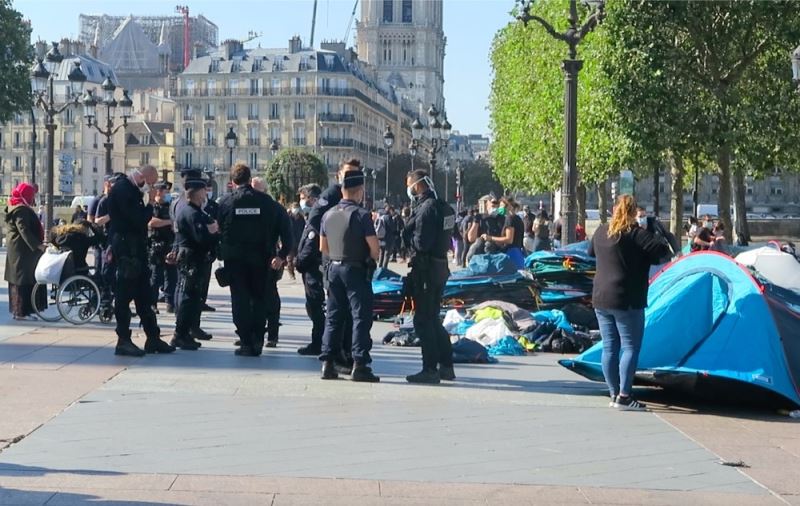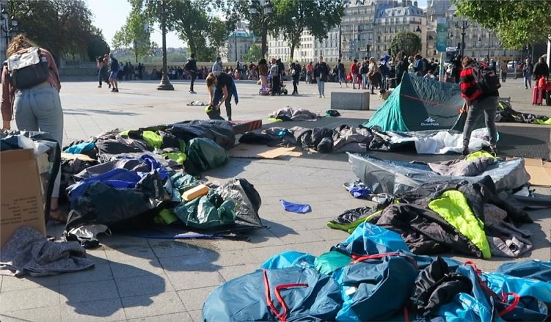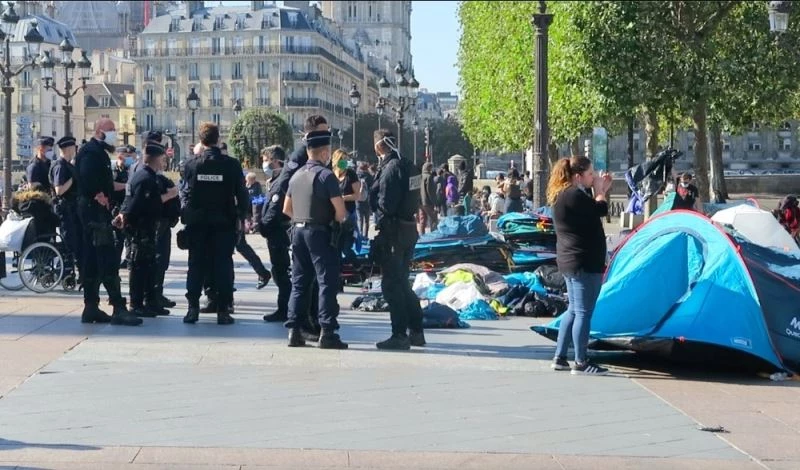 Paris Belediyesi önünde çadır kurarak geceyi geçiren göçmenlere, Fransız polisi müdahale etti. Uyudukları sırada, polis müdahalesi ile karşılaşan evsiz göçmenlerin çadırları söküldü ve Belediye Binası önünden uzaklaştırıldı. Aralarında Somali, Afganistan, Fildişi’nden gelen göçmenlerin bulunduğu 219 kişi kalacak yer bulabilmek için sokaklara dağıldı.