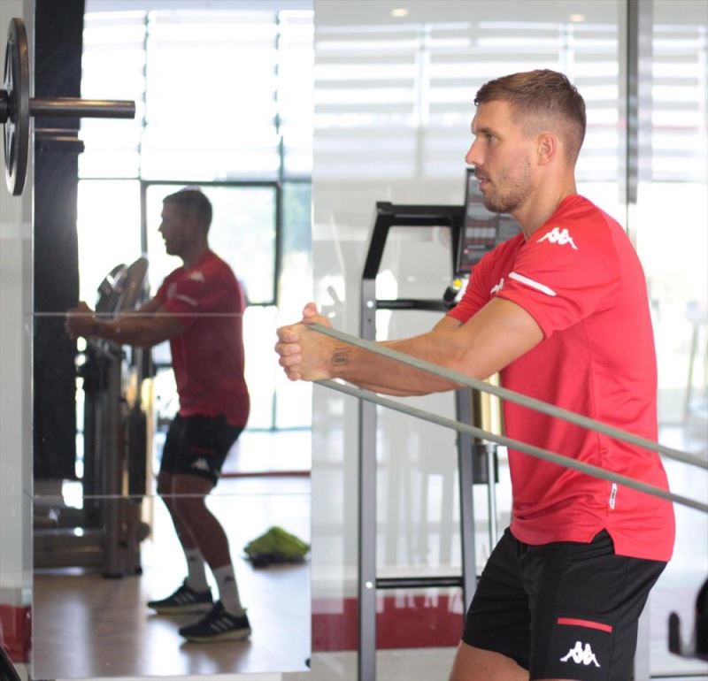 Öte yandan, tedavi süreçleri devam eden yildiz futbolcu Lukas Podolski ile kulübün yeni transferlerinden Serdar Gürler, takimdan ayri salonda çalisti.