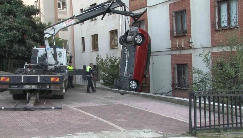 Etiler’de bir sürücü fren yerine gaza basması sonucu apartman boşluğuna düştü. Facianın eşiğinden dönülen kazada yaralı kadın hastaneye kaldırıldı. Araç ise çekici tarafından çıkarıldı.