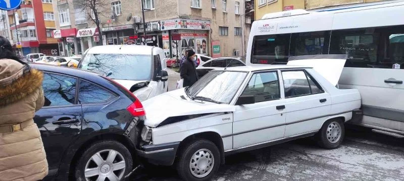 Freni boşalan otomobil park halindeki araçlara çarptı, 1 çocuk ezilmekten kurtuldu