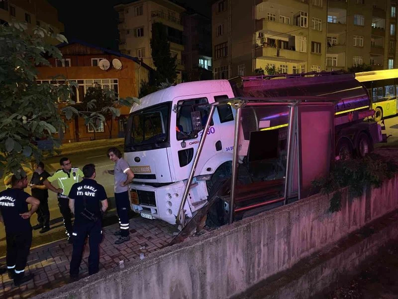 Kocaeli’nin Gebze ilçesinde freni boşalan kimyasal madde yüklü tanker, önce direğe sonra otobüs durağına çarptı. Kazada tankerin sürücüsü yaralandı.