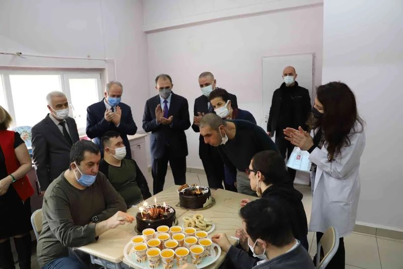 Elazığ Fırat Üniversitesi Rektörü Fahrettin Göktaş, halk eğitim merkezinde öğrenim gören 2 özel öğrencinin doğum günü olması sebebiyle pasta kesip doğum günlerini kutladı.