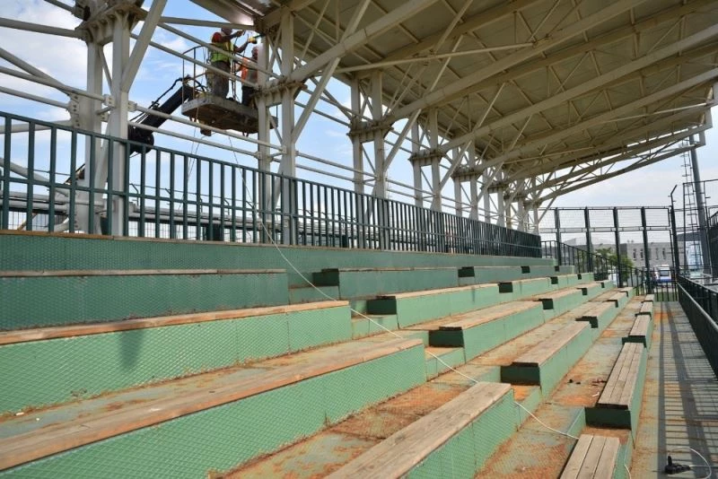 Acil giriş-çıkış kapılarının, yedek kulübelerin ve rakip seyirci tribünü giriş-çıkış demir doğrama kapılarının yenilenmesi işlemi de hızla devam ediyor. Sporseverlerin antrenman ve müsabakaları daha rahat izleyebilmesi adına seyirci tribünlerinin yanları ve arkaları kapatılıyor. Böylelikle taraftarlar kış aylarında da yağış ve soğuğa maruz kalmadan takımlarına konforlu bir ortamda destek verebilecek. Bu çalışmaların ardından sulama sistemlerinin tadilatı ve saha zemini iyileştirme çalışması yapılacak.