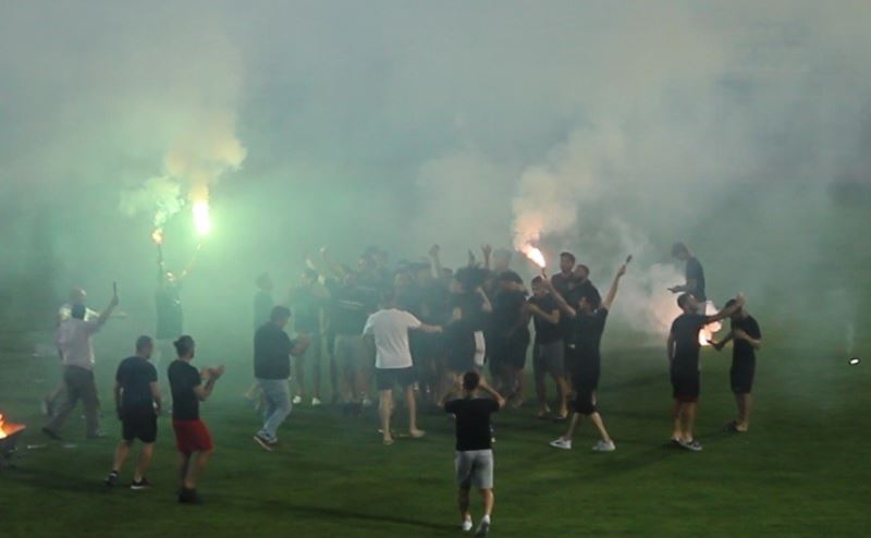Futbolcular, TFF’nin alt liglerle ilgili kararını sahada meşale yakarak kutladı
