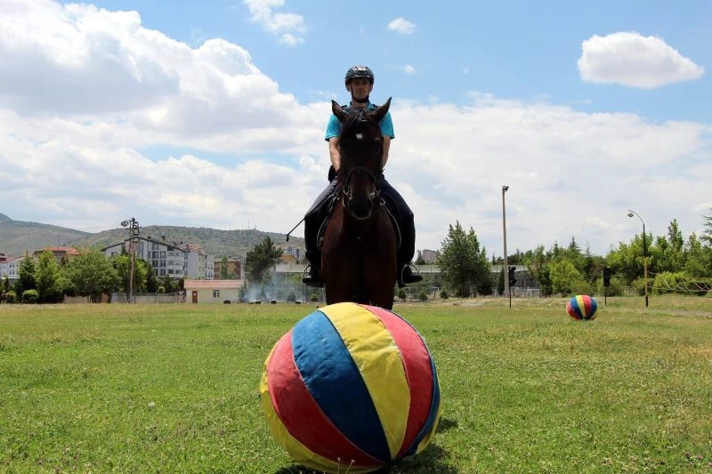 Nevşehir At ve Köpek Eğitim Merkezi’nde görevli Destan isimli atın tıpkı futbolcu gibi top oynaması dikkatlerden kaçmadı.