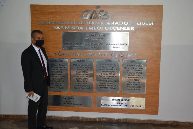 Güneydoğu Anadolu İhracatçı Birlikleri tarafından inşa ettirilerek 2014 yılında eğitime kazandırılan GAİB Mesleki ve Teknik Anadolu Lisesi’ni ziyaret eden GAİB Koordinatör Başkanı Ahmet Fikret Kileci, yürütülen çalışmalar ve eğitimde uygulanan metotlarla ilgili okul müdürü Ömer Açar’dan bilgi alarak okulda incelemeler yaptı.