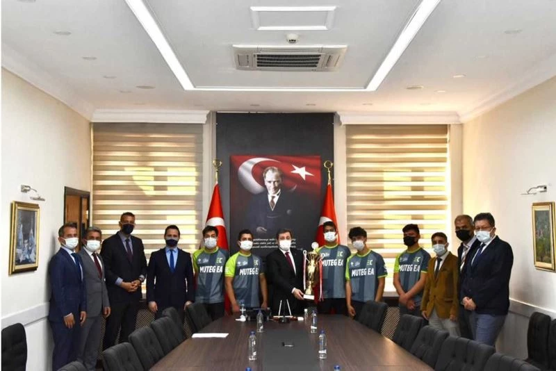 Vali Orhan Tavlı, Teknofest 2021’de ‘Elektrikli Araçlar’ kategorisinde doğa dostu Gale 48 adlı araçla katılarak Jüri Özel Ödülü alan Menteşe Şehit Ziya İlhan Dağdaş Mesleki ve Teknik Anadolu Lisesi öğrencileri Yakup Tuna, Mete Mustafa Çakır, Uğurcan Köseoğlu, Hüseyin Gökçe, İsmail Hakkı Erten ile öğretmenleri Ali Uzun, Mesut Yeşilmenderes ve Teknisyen Hakan Karahisar’a başarılarından dolayı hediye verdi.