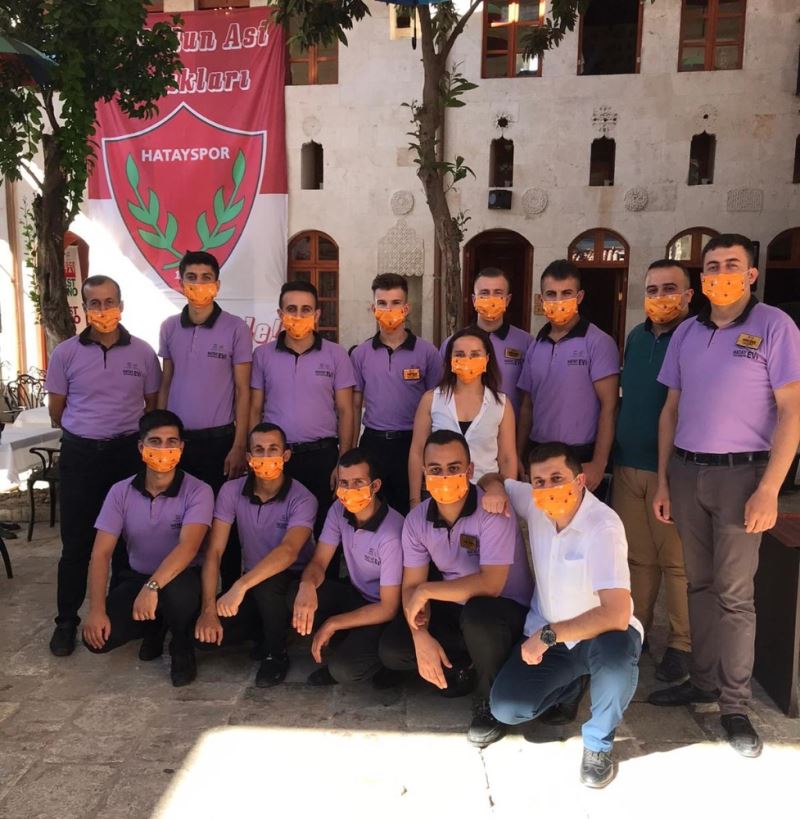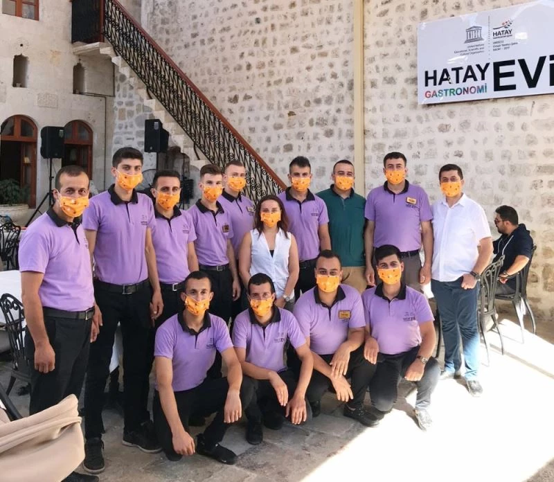 Hatay Gastronomi Evi personeli, son zamanlarda ülkemizde yaşanan kadına yönelik şiddet olaylarına dur demek için turuncu maskeleri takarak ‘Kadına Yönelik Şiddete Hayır’ mesajı verdi.