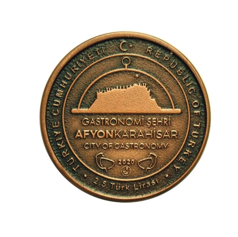 Afyonkarahisar Valiliğinin koordinasyonunda Afyonkarahisar Belediyesi ve Zafer Kalkınma Ajansı’nın destekleriyle geçtiğimiz yıl UNESCO’nun gastronomi alanına dahil edilen Afyonkarahisar’ın bu alandaki hatıra paraları Hazine ve Maliye Bakanlığı Darphane ve Damga Matbaası Genel Müdürlüğü tarafından basıldı. Paraların basıldığını darphane kamuoyuna duyurdu.