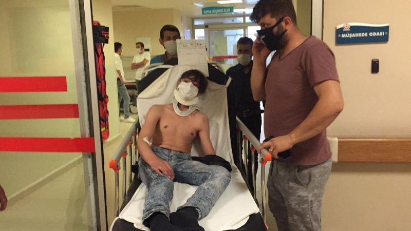 Bursa’da gaz teli takılı kalan motosikletteki 2 genç ölümden döndü.