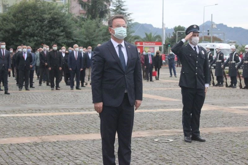 Giresun Valiliği önünde yer alan Atatürk Anıtındaki törene, Giresun Valisi Enver Ünlü, Giresun Belediye Başkanı Aytekin Şenlikoğlu, İl Emniyet Müdür Fahri Aktaş, Jandarma Bölge Komutanı Tuğgeneral Erhan Demir, siyasi parti temsilcileri ve sivil toplum kuruluşları temsilcileri ve öğrenciler katıldı. Atatürk Anıtına çelenk sunumuyla başlayan törende saat 09.05’te çalan sirenler eşliğinde 2 dakikalık saygı duruşuyla bulunuldu.