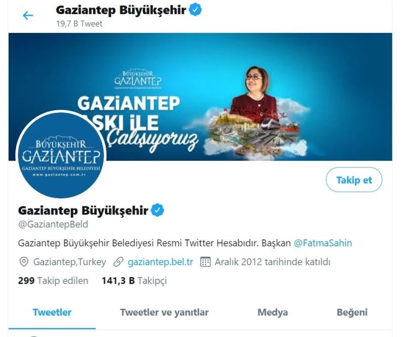 Gaziantep Büyükşehir Belediyesi, Eylül ayında Facebook, Twitter ve Instagram platformlarında aldığı 566 bin 560 etkileşimle, Türkiye’de bin 397 belediye arasında sosyal medya etkileşim performansıyla ikinci oldu.