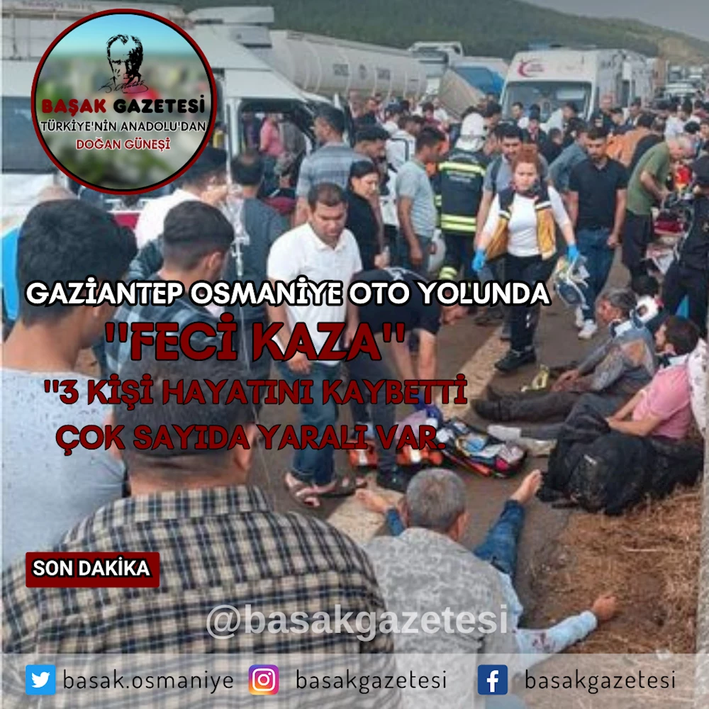 Gaziantep-Osmaniye otobanı Nurdağı civarında Osmaniye istikametine doğru seyir halinde olan içinde tarım işçilerini taşıyan aracında bulunduğu çok sayıda aracın karıştığı zincirleme trafik kazasında ilk belirlemelere göre 3 kişi hayatını kaybetti 11 kişide yaralandı. Yaralılar ambulanslarla çevrede bulunan çeşitli hastanelere kaldırıldı. Olayla ilgili polis soruşturma başlattı.