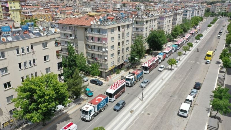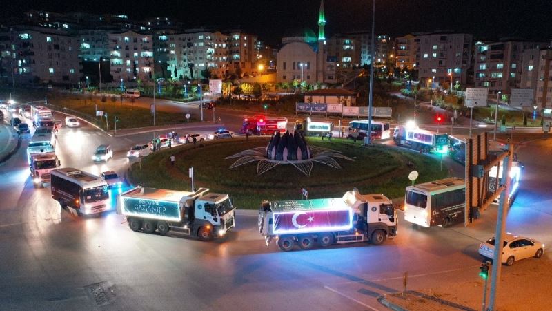 Büyükşehir Belediyesince organize edilen 60 aracın yer aldığı 4 kortej, şehrin dört bir yanına dağılarak 4 farklı rota oluşturuldu.