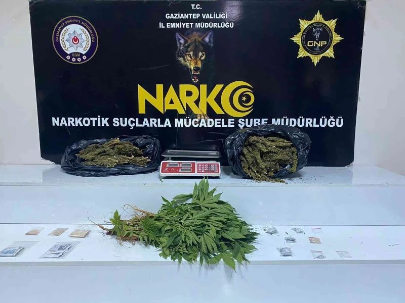 Gaziantep’te 3 kilo esrar ile 41 kök kenevir ele geçirildi