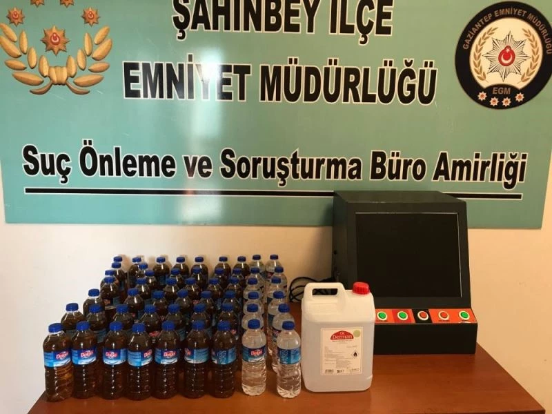 Gaziantep Emniyet Müdürlüğüne bağlı Şahinbey Emniyet Müdürlüğü ekipleri, Karayılan Mahallesi’nde kaçak alkol üretildiği tespit edilen bir ev ve bir iş yerine operasyon yaptı. Operasyon kapsamında adreslerde yapılan aramalarda 31 litre kaçak alkol ve 1 adet kumar makinesi ele geçirildi.