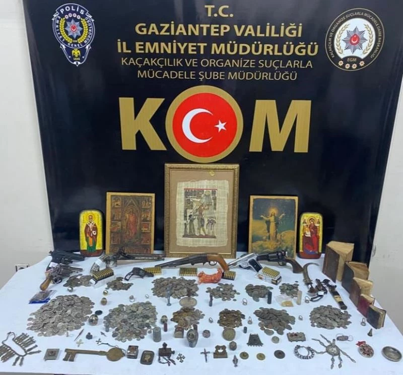 Gaziantep Emniyet Müdürlüğüne bağlı Kaçakçılık ve Organize Suçlarla Mücadele Şube Müdürlüğü ekipleri, 30 Haziran-6 Temmuz tarihleri arasında çok sayıda kaçakçılık operasyonu yaptı. Çeşitli adreslere yönelik yapılan operasyonlar sırasındaki aramalarda 234 bin 400 adet boş makaron, 45 bin 200 adet dolu makaron, 41 bin 48 adet gümrük kaçağı sigara, 3 bin 336 adet tarihi eser, 90 litre etil alkol, 30 adet ruhsatsız tabanca, 6 adet tüfek, 32 adet şarjör ve 628 adet fişek ele geçirildi. Operasyonlar sonrasında 61 şüpheli şahıs gözaltına alındı.