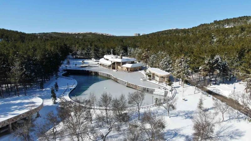 Gaziantep’te etkili olan kar yağışının ardından aşırı soğuk hava nedeniyle göletler buz tuttu.