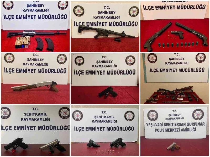 Gaziantep Emniyet Müdürlüğünden yapılan açıklamada, 21 Eylül 2022 ile 27 Eylül 2022 tarihleri arasında yapılan asayiş suçları ile mücadele çalışmalarında 36 adet ruhsatsız tabanca, 22 adet ruhsatsız tüfek, 20 adet kuru sıkı tabanca, 415 adet fişek ve 53 adet kesici-delici alet ele geçirildi.