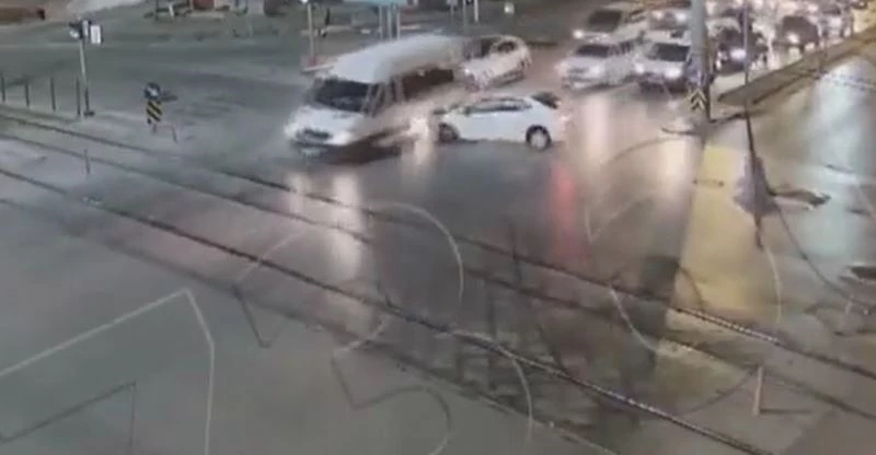 Genellikle sürücü hatalarından kaynaklandığı görülen kazalarda, otomobilin tramvayla çarpışması anı ve bir otomobilin kaza sonrası savrulduğu anlar da saniye saniye görüntülendi.