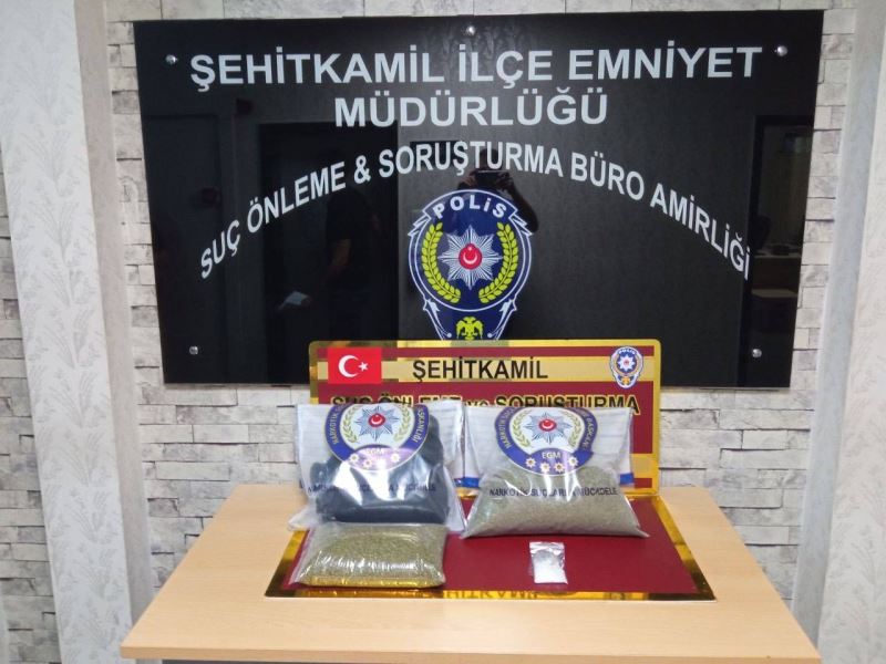 Gaziantep Emniyet Müdürlüğü’ne bağlı Şehitkamil İlçe Emniyet Müdürlüğü ekipleri, uyuşturucu ile mücadele kapsamında çalışmalarını sürdürüyor. Ekipler, Malazgirt Mahallesi’nde bir ikamette uyuşturucu ticaretiyle uğraşıldığı bilgisinin alınması üzerine belirlenen adrese operasyon düzenledi. Evde yapılan aramalarda 2 kilo 740 gram uyuşturucu madde ele geçirildi.
