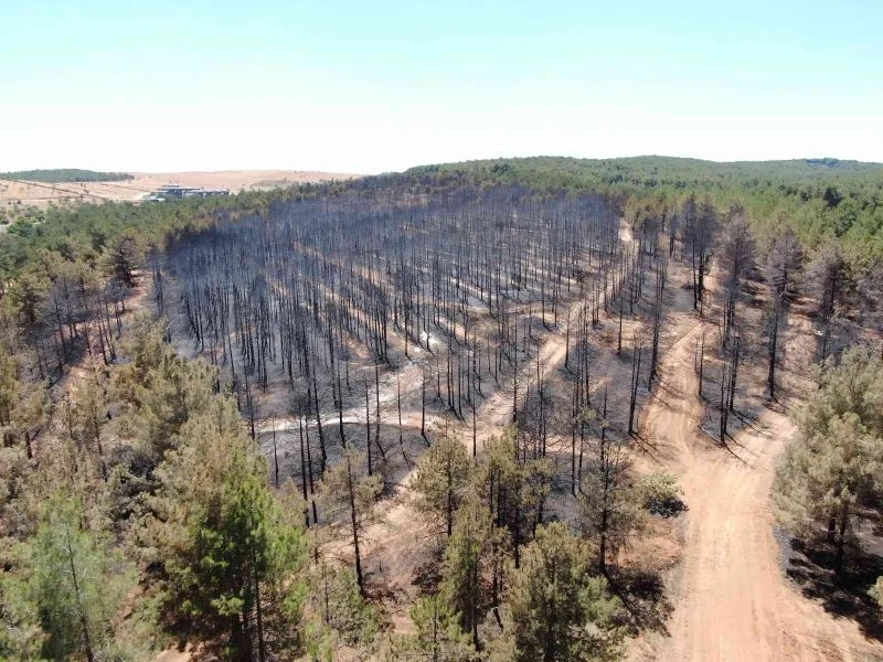 Gaziantep’te, dün öğle saatlerinde çıkan orman yangının bilançosu dronla görüntülendi. Yangın yaklaşık 15 hektarlık alandaki yüzlerce ağacı kül ederken alandaki kısmi soğutma çalışmaları devam ediyor.
