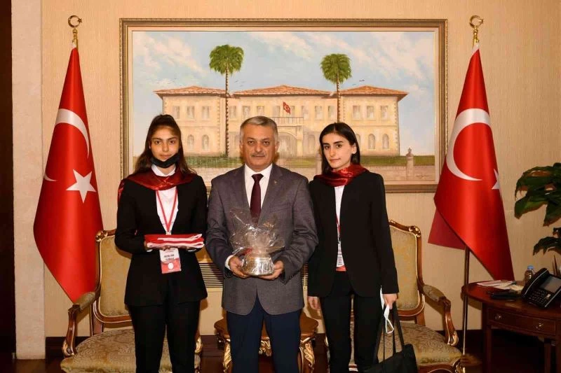 Antalya Valisi Ersin Yazıcı, Gaziantep’in Düşman İşgalinden Kurtuluşunun 100’üncü Yılı Etkinlikleri kapsamında Gaziantep’ten toprak ve bayrak getiren Öğretmen Nilay Meyveci ve Öğrenci Merve Nur Yılmazer’i makamında kabul etti.