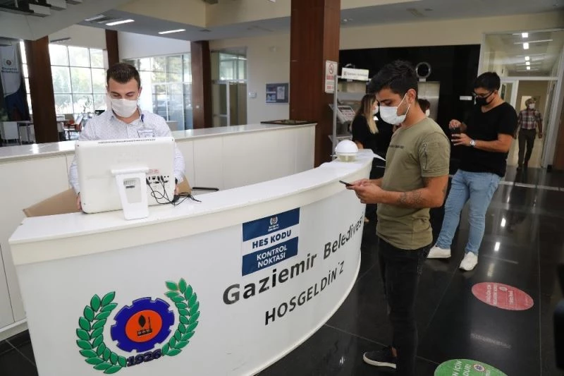 Korona virüsü ile mücadele önlemlerini artıran Gaziemir Belediyesi, HES kodu sorgulama sistemini uygulamaya başladı. Bu kapsamda, belediyenin hizmet noktalarını ziyaret edecek vatandaşlara HES kodunun sorulacağı, HES kodu olmayanlar ve sorgulamaya göre riskli olduğu belirlenenlerin binaya giremeyeceği belirtildi.