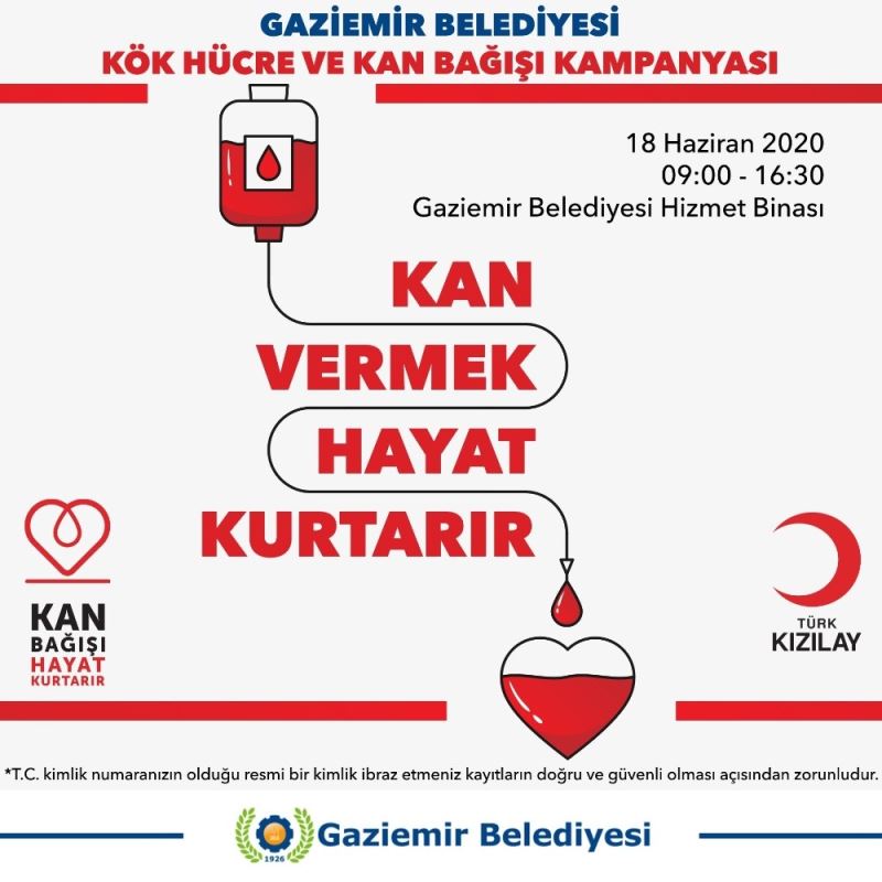 Gaziemir Belediyesi, korona virüs salgını nedeniyle kan bağışlarında yaşanan azalmalar sonucu kan stokları kritik seviyenin altına düşen Kızılay’a destek vermek için harekete geçti. Gaziemir Belediyesi ile Kızılay iş birliğinde “15 dakikanı ayır hayat kurtar” çağrısıyla kök hücre ve kan bağışı kampanyası düzenlenecek.