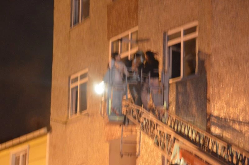 İhbar üzerine olay yerine gelen itfaiye ekipleri, yangına kısa sürede müdahale ederek mahsur kalanları merdiven yardımıyla tahliye etti. Tahliye edilen apartman sakinlerinin panik halleri kameralara yansıdı.