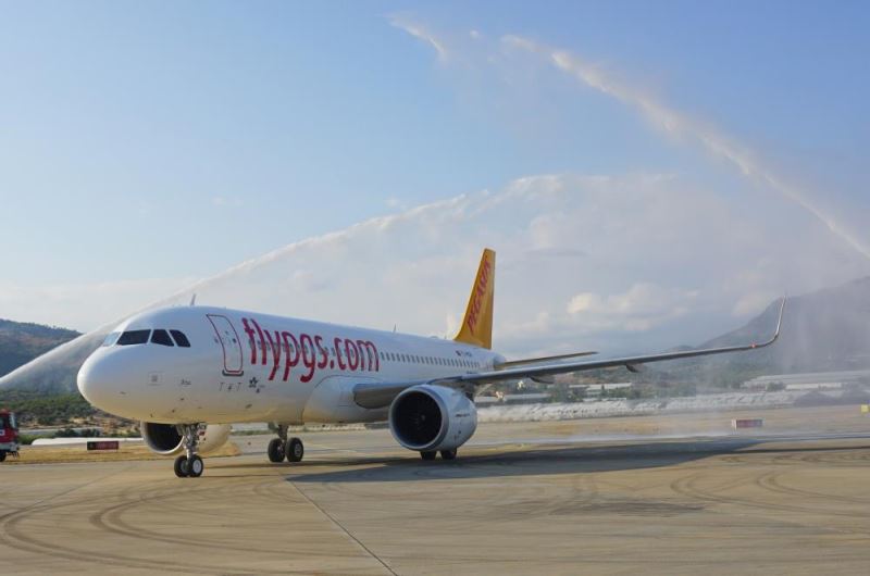 THY, Anadolujet ve Pegasus, Istanbul ve Ankara'dan Gazipasa Alanya Havalimani'na tarifeli iç hat uçuslarini baslatirken, Istanbul'dan gelen ilk uçus su takiyla karsilandi.