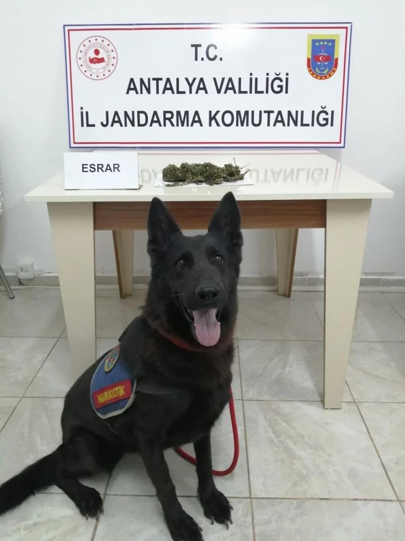Gazipaşa Cumhuriyet Başsavcılığı koordinesinde Gazipaşa ilçesi Güney Yol Kontrol Noktasında 6 Ağustos tarihinde M.N. isimli seyahat firmasına ait otobüste İl Jandarma Komutanlığı köpeği ile birlikte icra edilen önleme aramasında H.Y. isimli şahsa ait çanta içerisinde yaklaşık 54 gram esrar maddesi ele geçirildi. Olayla ilgili adli işlemler başlatıldı.
