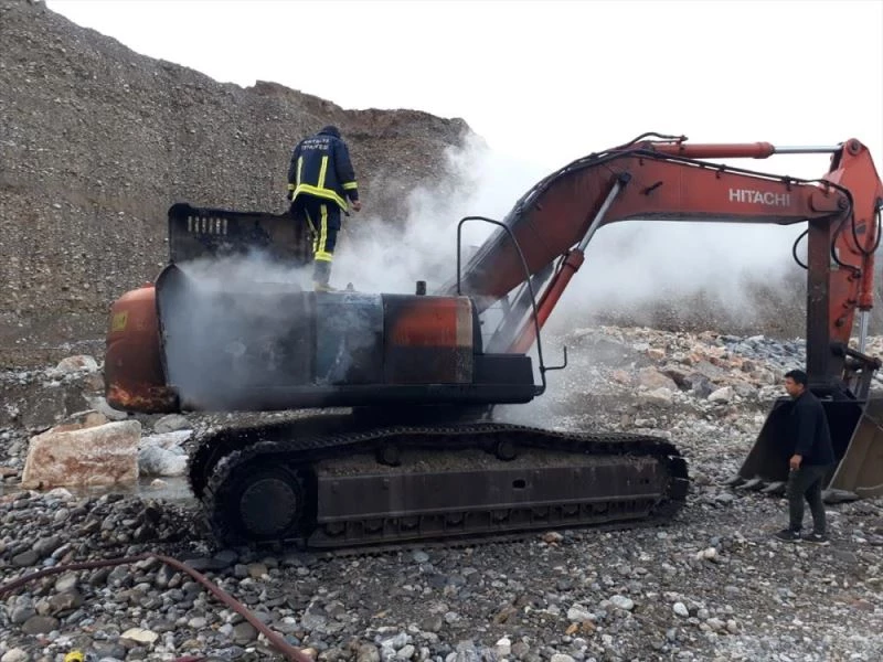 İşçilerin haber vermesi üzerine bölgeye itfaiye ekibi sevk edildi. Kısa sürede söndürülen yangında kepçe kullanılamaz hale geldi.