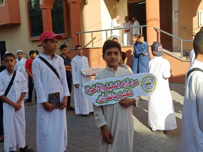 Dar Al-Quran ve Al-Sunnah kuruluşları, Gazze Şeridi’nin merkezindeki Nuseirat kampında ailelerin çocuklarına Kur’an-ı Kerim öğretmesinin önemine dikkat çekmek için büyük bir yürüyüş düzenledi. Yürüyüşe Kur’an-ı Kerim’in tamamını veya bir kısmını ezberleyen yaklaşık 700 Filistinli çocuk katıldı. Al-Farouq Camii’nin önünden başlayarak Selahaddin Caddesi’ne ulaşana kadar Nuseirat Kampı’nın sokaklarında yürüyen çocuklar, Kur’an-ı Kerim ve pankartlar taşıdı.