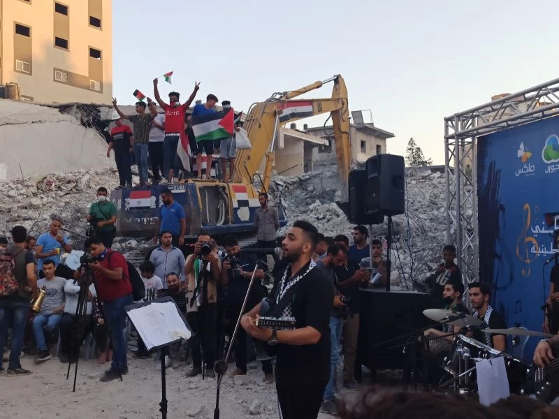 Filistin’in Gazze kentinde halk yaralarını sarmaya devam ederken, Filistinli müzik grubu Maddah Al-Qamar İsrail hava saldırılarında yıkılan el-Şuruk Kulesi’nin enkazında konser verdi. Filistin Kültür Bakanlığı tarafından Gazze’deki Pozitif Enerji Merkezi işbirliği ile düzenlenen Music Over The Rubble (Enkaz Üzerinde Müzik) adlı konsere, çok sayıda Filistinli ellerinde Filistin bayrakları ile katıldı. Konserde, Filistin direnişine ve İsrail işgaline atıfta bulunan karşı birçok şarkı seslendirildi.