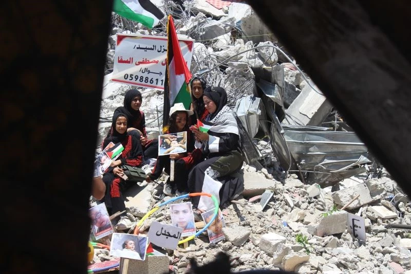 Gazze Şeridi’nin güneyindeki Han Yunus kentinde, İsrail’in düzenlediği geçtiğimiz Mayıs ayında düzenlediği saldırılar sırasında hayatını kaybeden çocukların fotoğrafları sergilendi. If We Stop Dreaming (Hayal Etmeyi Bırakırsak) Derneği tarafından düzenlenen sergi, İsrail’in 14 Mayıs’taki saldırısında yıkılan bir evin enkazı üzerinde gerçekleştirildi. Sergide, İsrail saldırılarında hayatını kaybeden ve yaralanan Filistinli çocukların fotoğrafları, oyuncak bebekler, hava saldırısı düzenleyen İsrail savaş uçaklarının karton maketleri yer aldı.