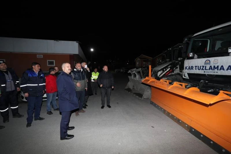 Gebze Belediyesi Fen İşleri Müdürlüğü bünyesinde oluşturulan karla mücadele ekiplerini ziyaret eden Başkan Zinnur Büyükgöz, "Acil bir durumda Kriz Masası’nın 777 00 30 numaralı telefonunu arayarak 7/24 yardım talebinde bulunabilirsiniz" dedi.