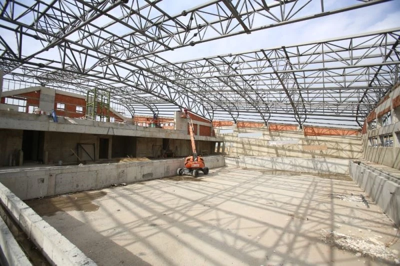 Büyükşehir, spor salonunun tüm imalatlarını bitirirken salonun çevre peyzaj düzenlemesini de tamamladı. Yüzme havuzunda ise çelik çatı imalatı sürerken soyunma odaları ve lavabolardaki seramik kaplama işleri devam ediyor. İç sıvaları tamamlanan yarı olimpik yüzme havuzunun, dış cephe kaplaması, mekanik ve elektrik tesisat imalatları sürüyor.