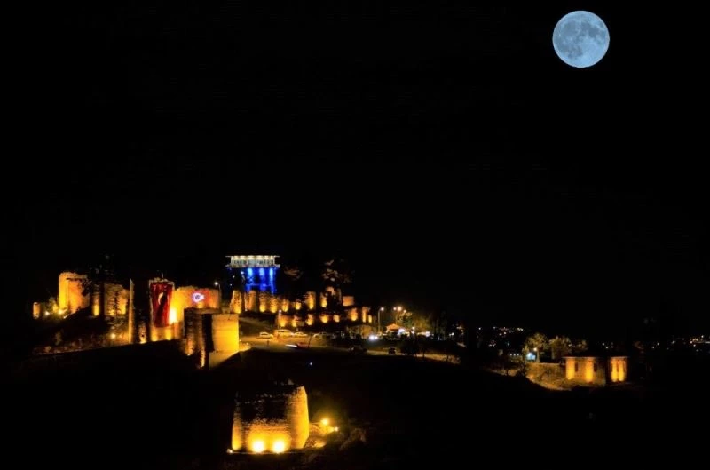 Kütahya’da ışıklandırılan tarihi Hisar Kalesi, hem gece, hem de gündüz görüntüsüyle adeta göz kamaştırıyor.