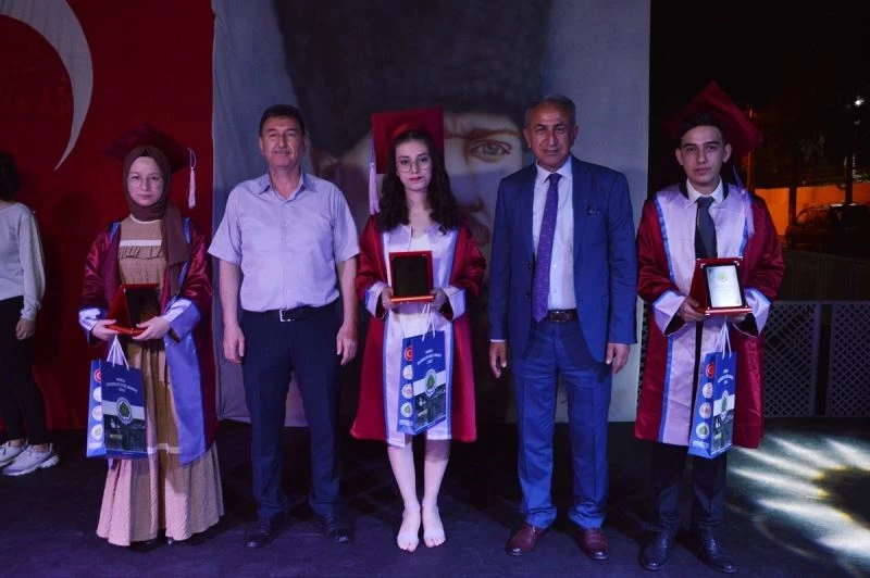 Okul birincisi Dilay Gürcan, ikincisi Azime Şen ve üçüncüsü Vural Özçelik’e protokol üyeleri tarafından plaket takdim edildi. Dilay Gürcan okul kütüğüne plaket çaktı. temsili diplomalarını alan öğrenciler Müzik Öğretmeni Ömür Yılmaz eşliğinde önce okul marşını söyledi, ardından keplerini havaya fırlatarak mezuniyet coşkusunu yaşadı.