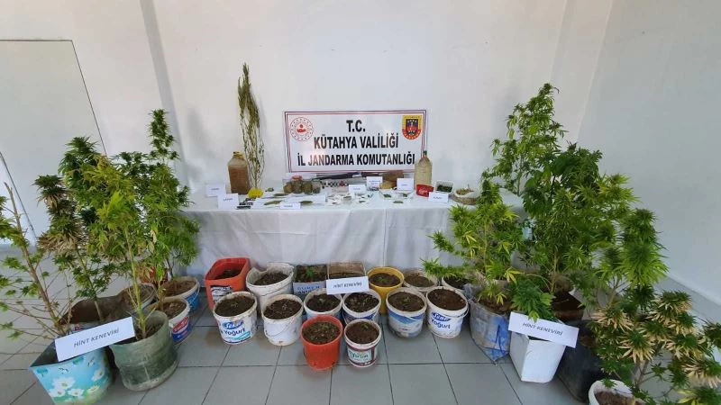 Gediz Cumhuriyet Başsavcılığının talimatıyla harekete geçen Jandarma ekipleri A.D. isimli şahsın evinde yapılan baskınla saksılara ekili vaziyette 50 kök hint keneviri, 550 gram kubar esrar, 120 Gram kenevir tohumu ve ruhsatsız çift kırma av tüfeği ele geçirdi.