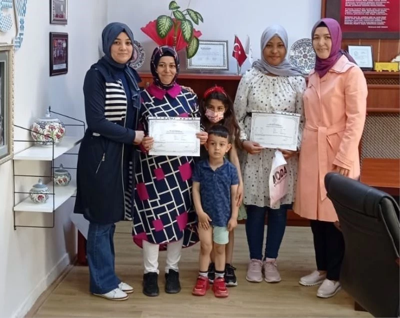 Kütahya’nın Gediz İlçesinde Halk Eğitim Merkezinin açtığı okuma yazma kursunu başarıyla tamamlayan göçmen kadınlara sertifikaları verildi.