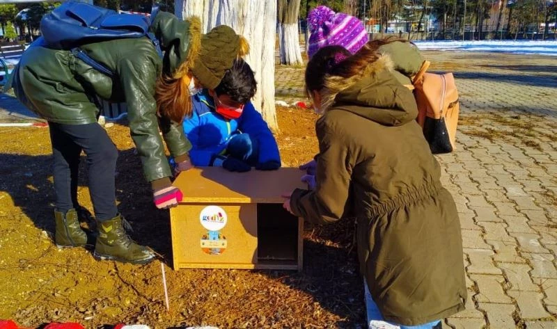 Kütahya’nın Gediz ilçesinde ortaokul ve lise öğrencileri tarafından hazırlanan barınaklar ilçenin çeşitli yerlerine yerleştirildi.