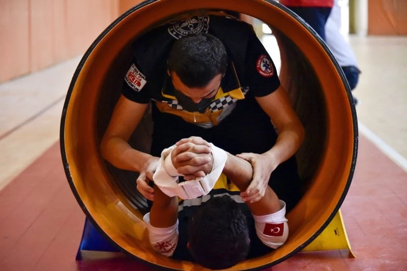 Parkurda en çok sedyedeki yaralıyla birlikte geçtikleri dairenin olduğu alanda zorlandıklarını anlatan Bozdan, “Dar alanda dengeyi sağlamak çok zor ve hastanın devrilme riski vardı. Hastayı devirmeden geçmek önemli olan. Bu tatbikatlar bizi mesleğe hazırlıyor” diye konuştu.