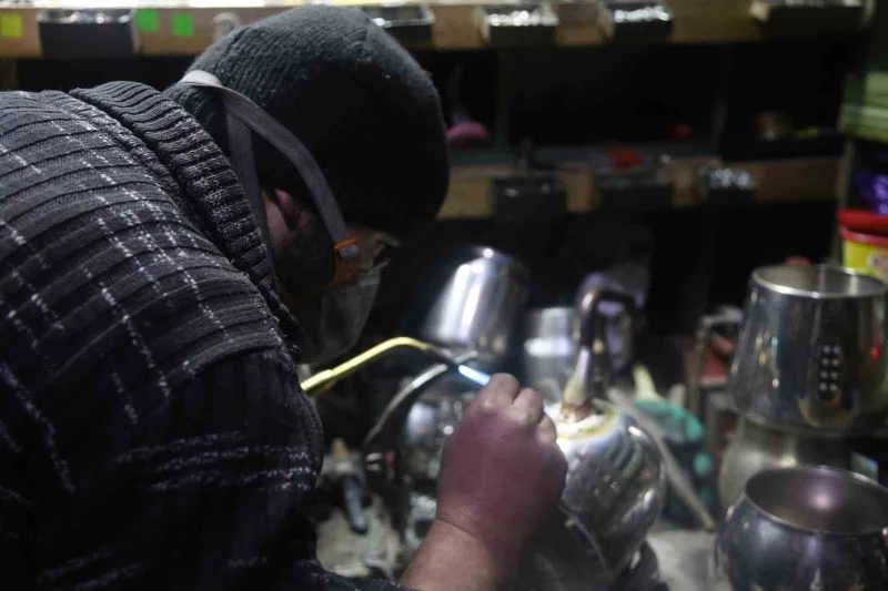 Kastamonu’da yıllardır esnaflık yapan polisaj ustası, gelen siparişleri biriktirip sabah saatlerine kadar tencere ve çaydanlıkların bakımını yaparak kazancını depremzedelere bağışladı.