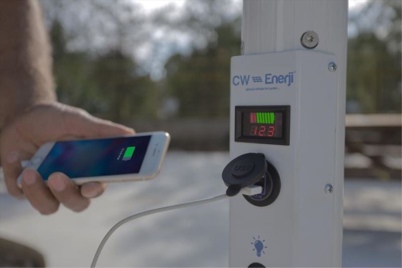 Antalya Organize Sanayi Bölgesinde faaliyet gösteren CW Enerji'den yapilan açiklamada, monokristal günes paneli kullanilarak üretilen semsiyelerin, tatilcilerin telefon ve tablet gibi cihazlarini sarj etme sorununa çözüm olacagi ifade edildi.