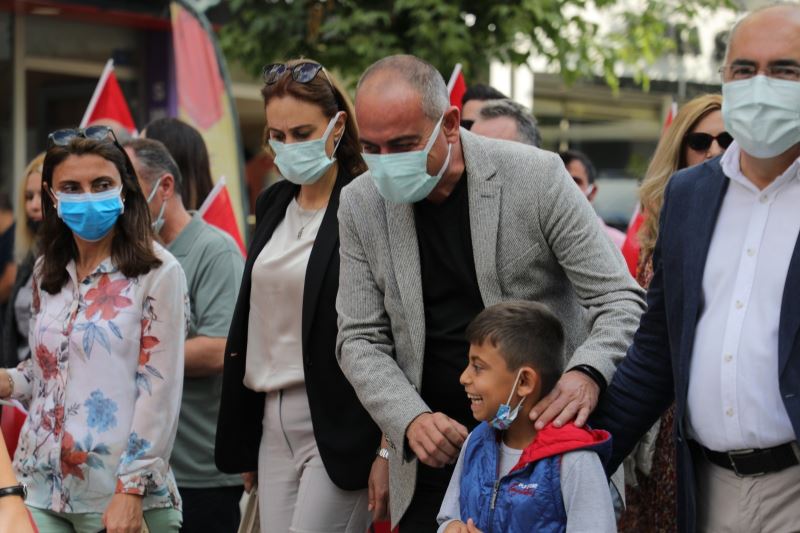 İskele Meydanı’na gelen kortej, kurdele keserek resmi açılışı gerçekleştirdi. Başkan Sertaslan ve beraberindeki heyet zeytin üreticilerinin stantları ile kadın girişimciler, Gemlik Belediyesi’nin El Ele Kadın Dayanışma Birimi, Gemlik Kent Konseyi Gençlik Meclisi stantlarını da ziyaret etti.