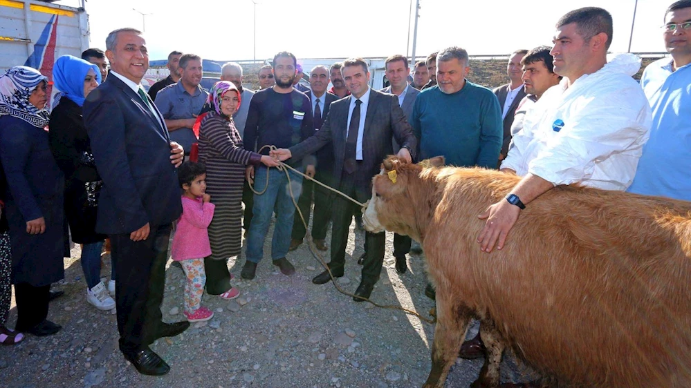 Osmaniye Merkezde hibe desteği almaya hak kazanan genç çiftçilere 115 büyükbaş hayvan dağıtımı yapıldı. Tarım ve Orman Bakanlığı tarafından yürütülen Kırsal Kalkınma Destekleri Kapsamında Genç Çiftçi projesi ile hibe desteği almaya hak kazanan başvuru sahibi çiftçilere düzenlenen törenle büyükbaş hayvanları teslim edildi. Dağıtım programına, Vali Yardımcısı Metin Esen, Tarım ve Orman İl Müdürü İbrahim Sağlam ve Osmaniye Ziraat Odası Başkan Vekili Hüsamettin Keskiner ile çiftçiler ve aileleri katıldı. İl Müdürü İbrahim Sağlam, genç çiftçi projelerine desteğin süreceğini belirterek, "Tarımda sürdürülebilirliğin sağlanması, genç çiftçilerin girişimciliğinin desteklenmesi, gelir düzeyinin yükseltilmesi ve kırsalda genç nüfusun istihdamına katkı sağlayacak kırsal alandaki tarımsal üretime yönelik projelerin desteklenmesi amacıyla uygulamaya konulan "Genç Çiftçi Projesi" kapsamında ilimizde 188 adet proje onaylanmıştı. Bu projelerin 12 adedi Bitkisel üretim,176 adedi ise Hayvansal üretim projeleridir. Bu proje kapsamında hibe desteği almaya hak kazanan merkez ilçedeki 23 Genç çiftçimizin her birine 5 baş olmak üzere toplam 115 büyükbaş hayvan teslim edilmiştir. Başta ilimiz hayvancılığına olmak üzere ülkemize ve milletimize hayırlı olmasını dileriz." dedi.